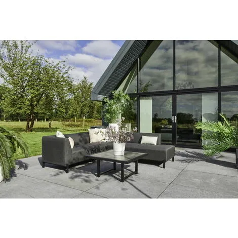 Confortable, moderne et élégant, cet ensemble DION CORNER SET offre un grand canapé d’angle et une table basse avec effet marbre pour votre extérieur ou votre intérieur. Ce salon de jardin, semblable à un salon moderne d’intérieur, est livré avec une assise en mousse Quick-Dry. Cette mousse innovante permet, grâce à sa structure alvéolaire, à l’eau de passer à travers, la mousse ne se gorgera pas d’eau et assurera un temps de séchage rapide sans moisissures. Cette mousse est recouverte d’un tissu Sunbrella, robuste et respirant, il garantit une bonne résistance des couleurs dans le temps et une résistance aux intempéries. Vous pourrez ainsi toujours laisser votre ensemble de jardin à l’extérieur, même pendant des périodes prolongées de soleil ou de pluie.