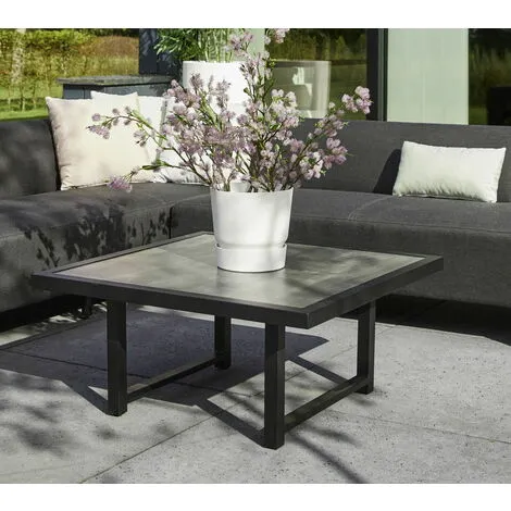 La table basse propose un effet marbre très à la mode et correspond parfaitement aux dernières tendances du jardin.
