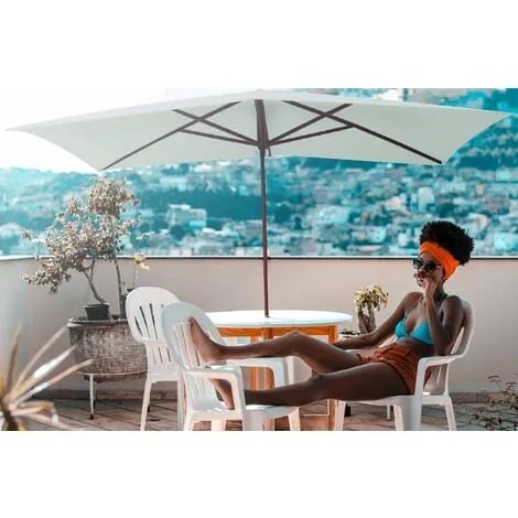 Ce parasol sera votre allié pour les temps ensoleillés. Sa structure en bois et sa toile en polyester d’une densité de 180g/m² sauront résister à toutes les intempéries. Sa toile waterproof et déperlante vous permettra de garder votre mobilier au sec.