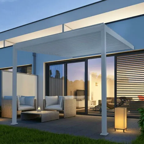 - Permet de choisir entre le soleil ou l’ombre, pour profiter de sa terrasse à tout moment de la journée. Protège de la pluie.