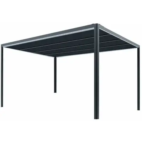 Toit de terrasse en aluminium couleur gris anthracite. Un design chic avec des lignes épurées. Ce toit de terrasse connecté contrôlable présente une nouvelle étape dans l’automatisation de votre jardin. Le déploiement de sa toile de haute qualité peut être contrôlé grâce à votre smartphone et vous permet une gestion facilitée. Le summum de la sophistication : les équipements optionnels vous permettront la gestion automatique du déploiement ou le retrait de la toile, en fonction de l’obscurité ou la force du vent. Pour garantir sa longévité, la toile en position retractée est protégée par un panneau contre-pluie.