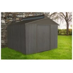 Nouveau ? Chalet & Jardin Abri Jardin Métal – Aspect BOIS VIEILLI 1010 – 9,66 M²- GRIS ?